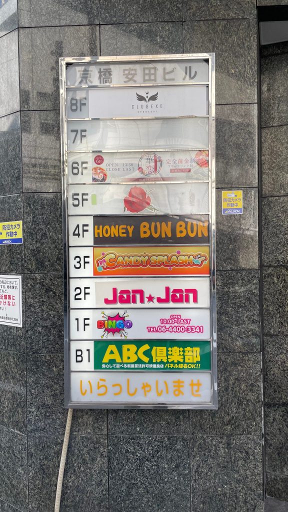 京阪京橋駅の裏手と言っていい場所にある、ほぼ全フロアが大人の社交場となっている安田ビルへ。